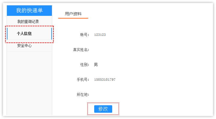 2、用戶中心點(diǎn)擊【個(gè)人信息】,進(jìn)入個(gè)人信息頁面,點(diǎn)擊【修改】,即可對(duì)個(gè)人信息進(jìn)行修改。