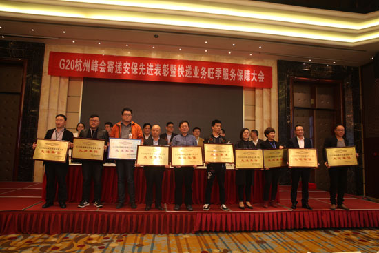 2016年10月31日下午14時(shí),“G20杭州峰會(huì)寄遞安保先進(jìn)表彰暨2016快遞旺季服務(wù)保障工作會(huì)議”在杭州天元大廈召開,杭州市綜治、公安、國安、郵政管理局等相關(guān)部門出席會(huì)議并講話,圓通速遞等快遞企業(yè)相關(guān)負(fù)責(zé)人及代表參加了會(huì)議。會(huì)議布置了2016年杭州市快遞旺季服務(wù)保障工作并隆重表彰了G20杭州峰會(huì)寄遞安保先進(jìn)集體和先進(jìn)個(gè)人,圓通速遞浙江省區(qū)、下屬3家加盟公司及17名員工分別受到表彰。